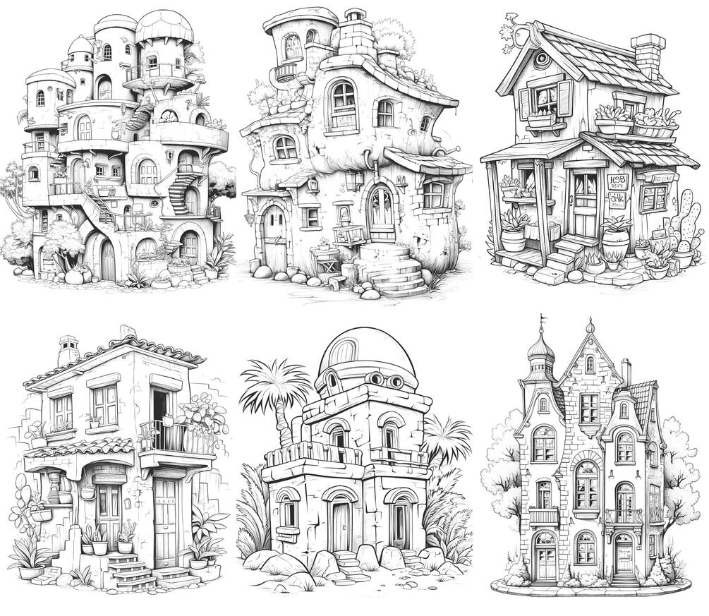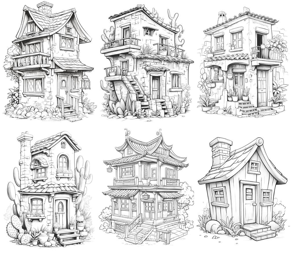 Whether you love cute cabins, whimsical cottages, or tiny townhouses — this set is full of unique designs that bring joy to every coloring session.